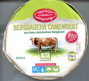 Der Bergbauern Camembert ist ein Weichkäse mit einem Fettgehalt von 55 Prozent (F.i.T.), der aus pasteurisierter Milch hergestellt wird.