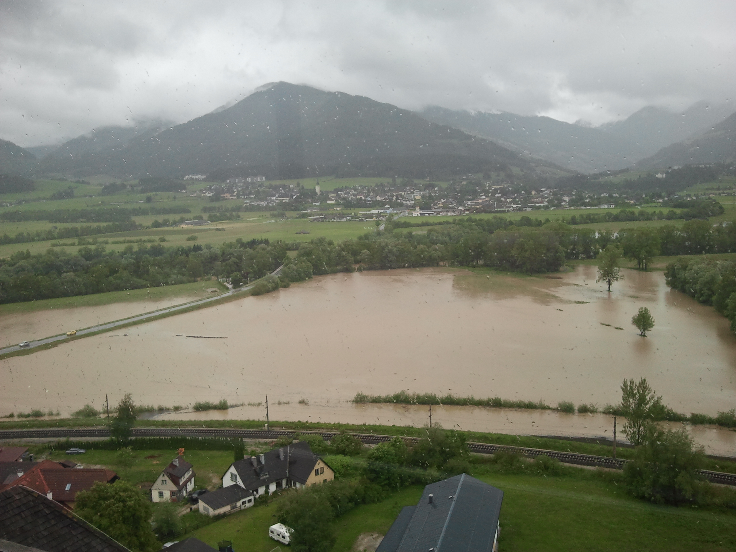 - EnnstalWiki-Fotowettbewerb Wald und Mensch und Wasser. Hochwasser 2013: Blick vom Turm des Schlosses Trautenfels auf die überfluteten Wiesen in Trautenfels bis zur Enns]]. Im Hintergrund ist Irdning zu sehen.
