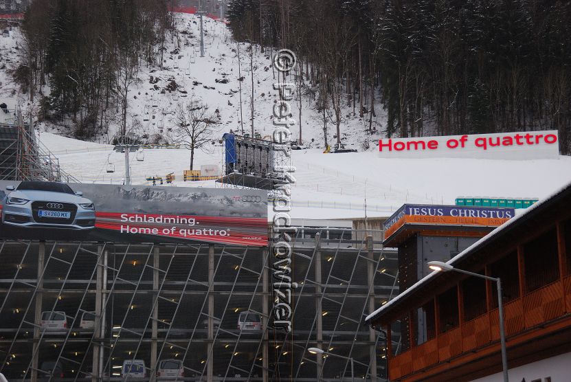 - Zum Artikel Alpine Ski WM 2013: Schladming - von der netten Kleinstadt zur WM-Stadt mit Bausünden: Jesus Christus versus Audi inmitten der Bergstadt Schladming