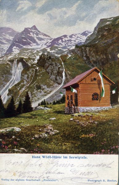 - die Hans-Wödl-Hütte, historische Postkarte vom Seewigtal
