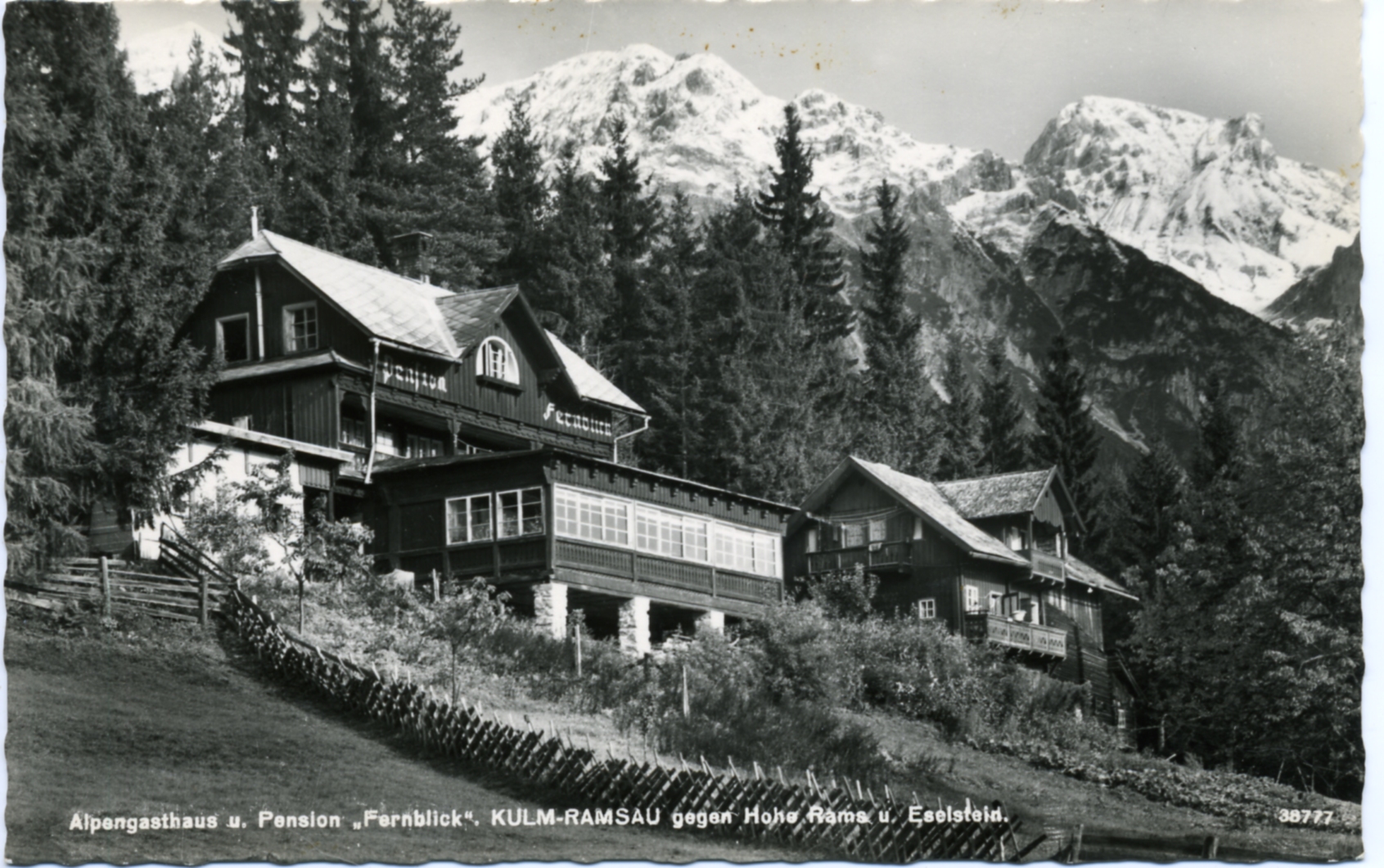 - die Pension Fernblick, Kulm in Ramsau am Dachstein, historische Postkarte;