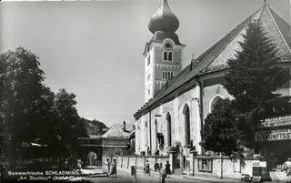 - die Katholische Stadtpfarrkirche hl. Achaz, historische Postkarte von Schladming