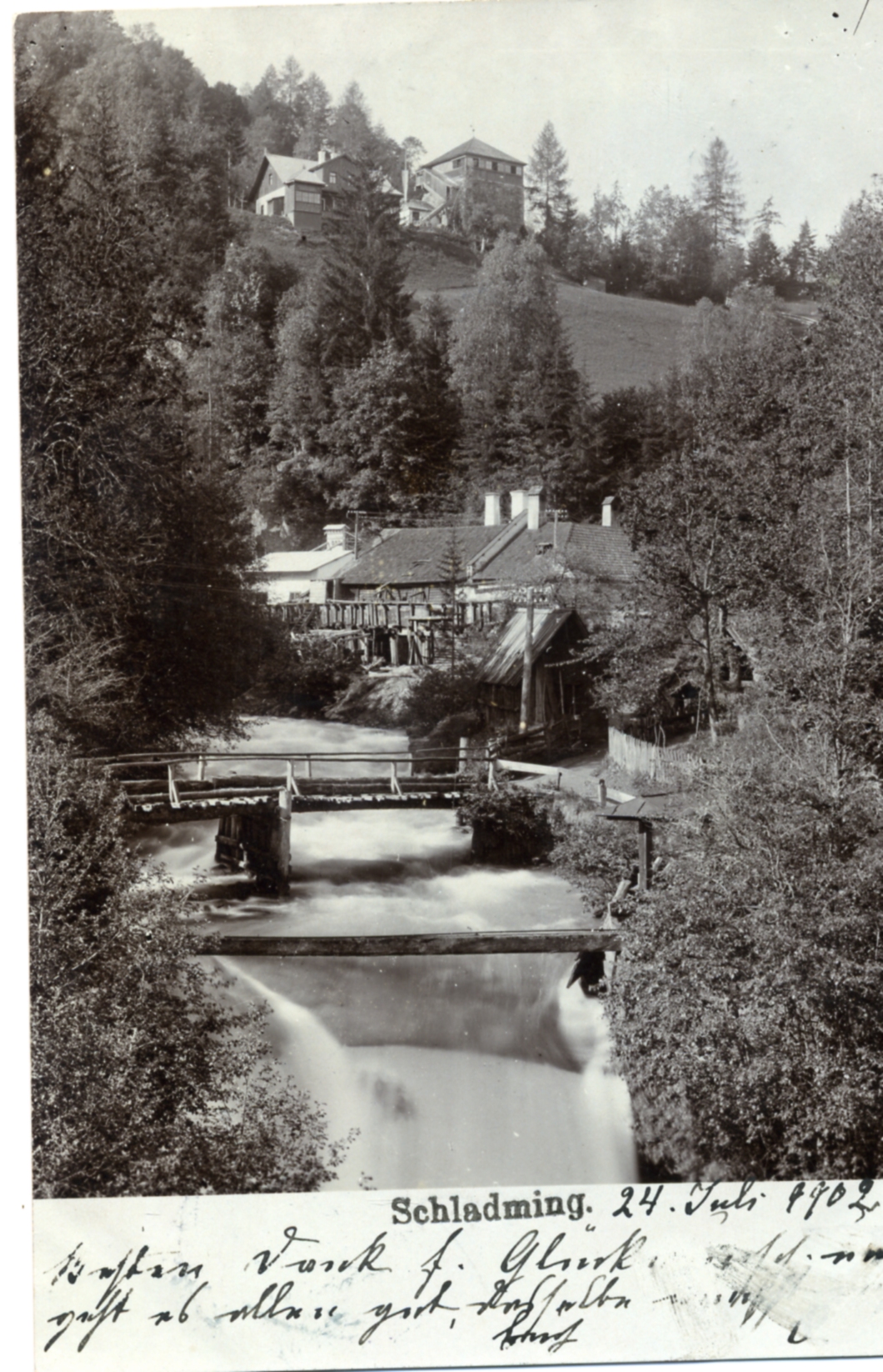 - der Talbach und Rohrmooser Schlössl, historische Postkarte von Schladming