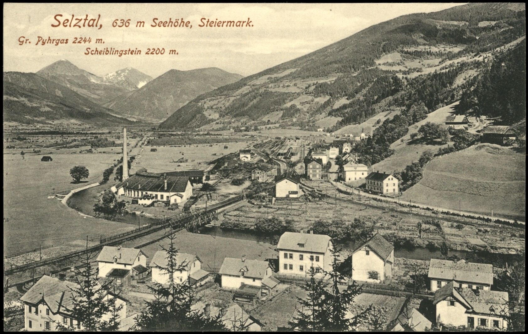 - Blick auf den Bahnhof Selzthal, historische Ansichtskarte aus dem Jahr 1915.