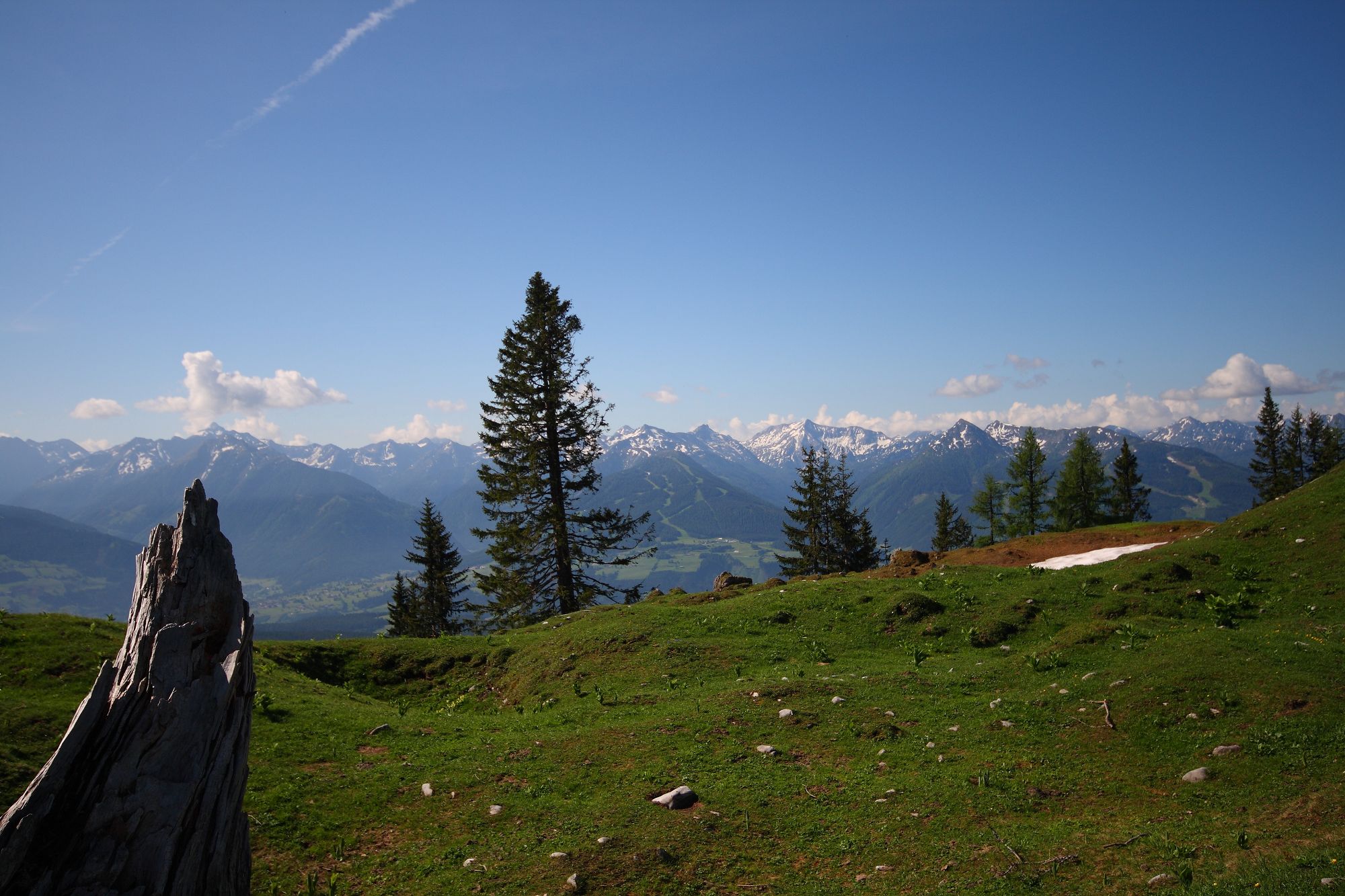 am Brandriedel in Ramsau am Dachstein, östlich der Austriahütte: Blick auf die Schladminger Tauern, Bildmitte die Hochwurzen