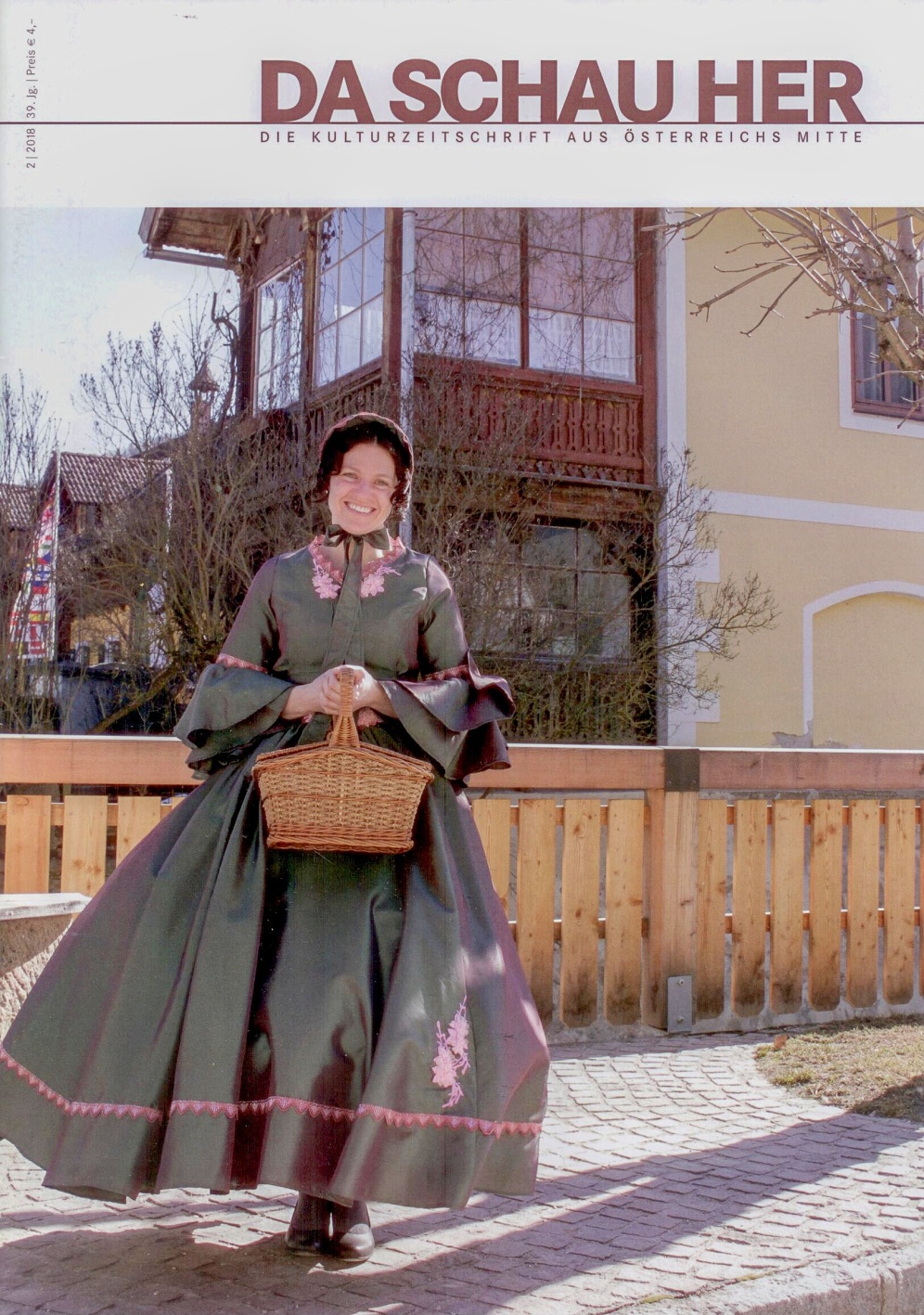 - Titelbild Da schau her 2018 Ausgabe 2, die Kulturzeitschrift aus Österreichs Mitte, ein Informationsmedium des Vereins Schloss Trautenfels: Die Veitkramerin im Festspiel Die Hochzeit, dargestellt von Martina Kukula