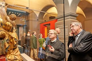 Gotik-Dauerausstellung Dem Himmel nahe im Benediktinerstift Admont, Eröffnung: im Bild Abt Gerhard Hafner mit Kuno Mayer.