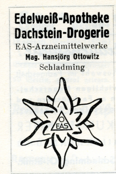 - Edelweiß Apotheke ,Historische Werbung in Schladming um 1949