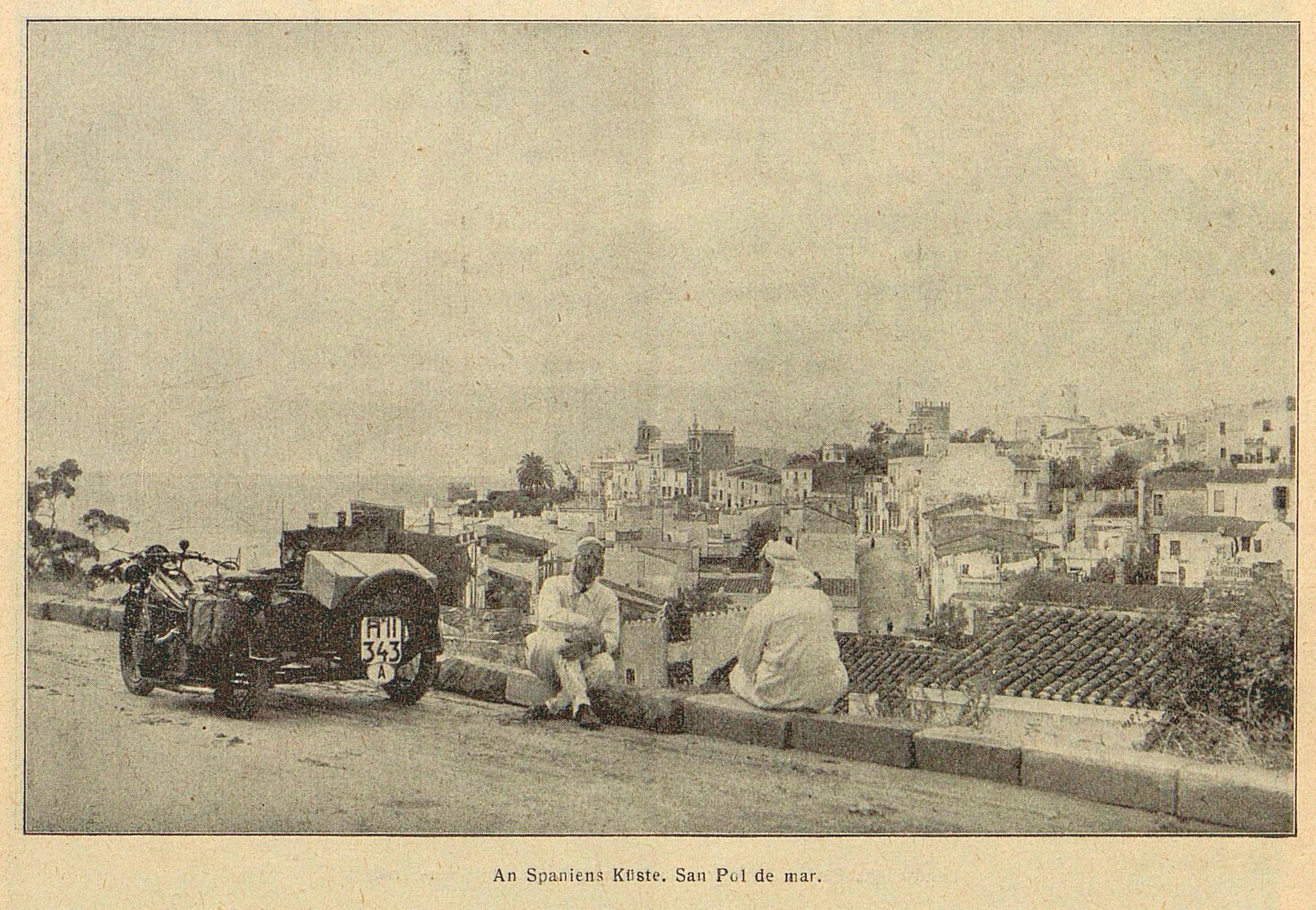 - Erwin Rezegh aus Weißenbach bei Liezen war 1929 mit einem Beiwagengespann zur Weltausstellung in Barcelona, Spanien, gefahren. Hier steht er mit seinem Freund an der spanischen Küste bei San Pol de Mar.