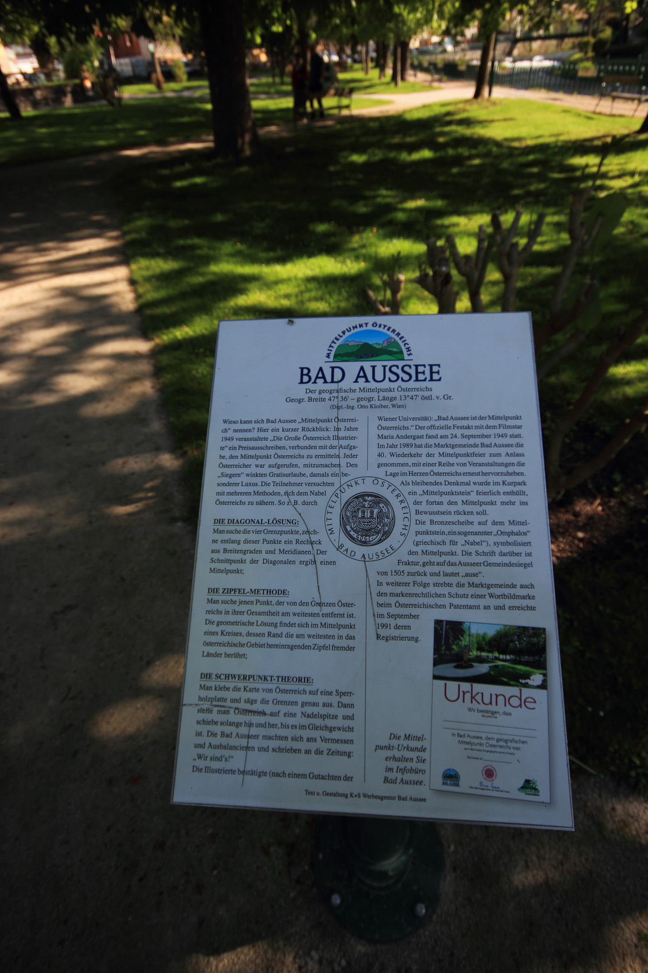 - der Mittelpunktstein im Bad Ausseer Stadtkurpark in Bad Aussee