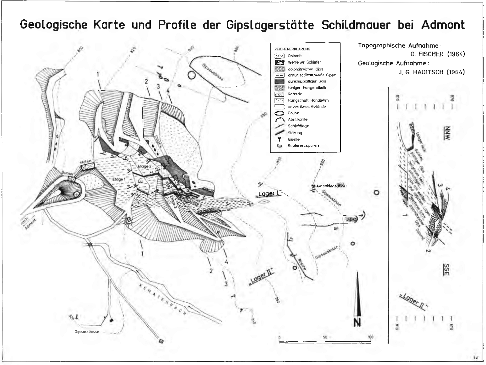 - Geologische Karte und Profile der Gipslagerstätte Admont
