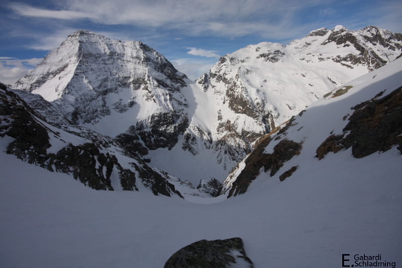 - Die Gollingscharte mit Hochgolling von der Steinwenderrinne