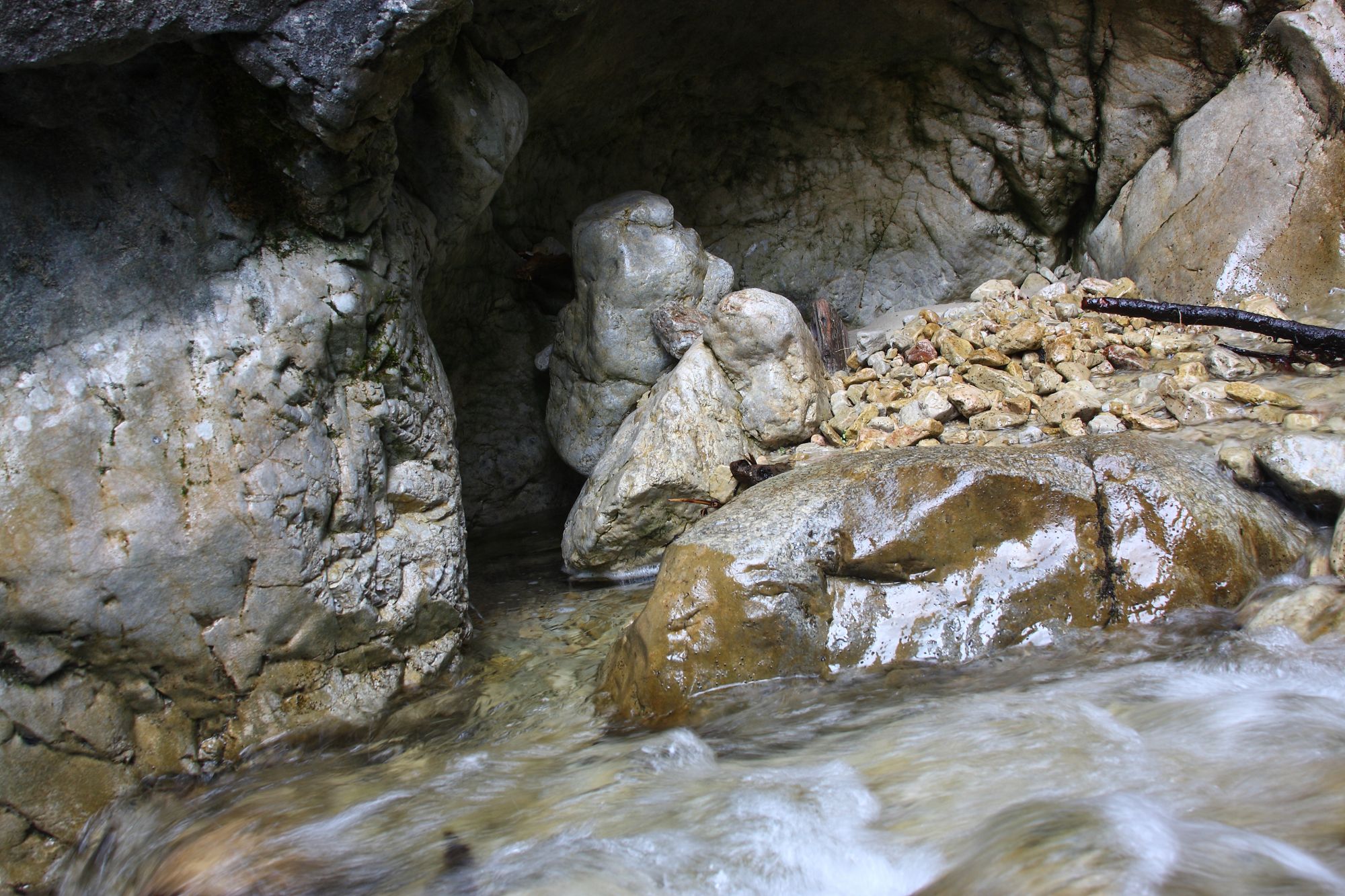 - der Gradenbach im Kerbtal zwischen dem Gradenbachwasserfall und dem Ahornsee im Dachsteingebirge.