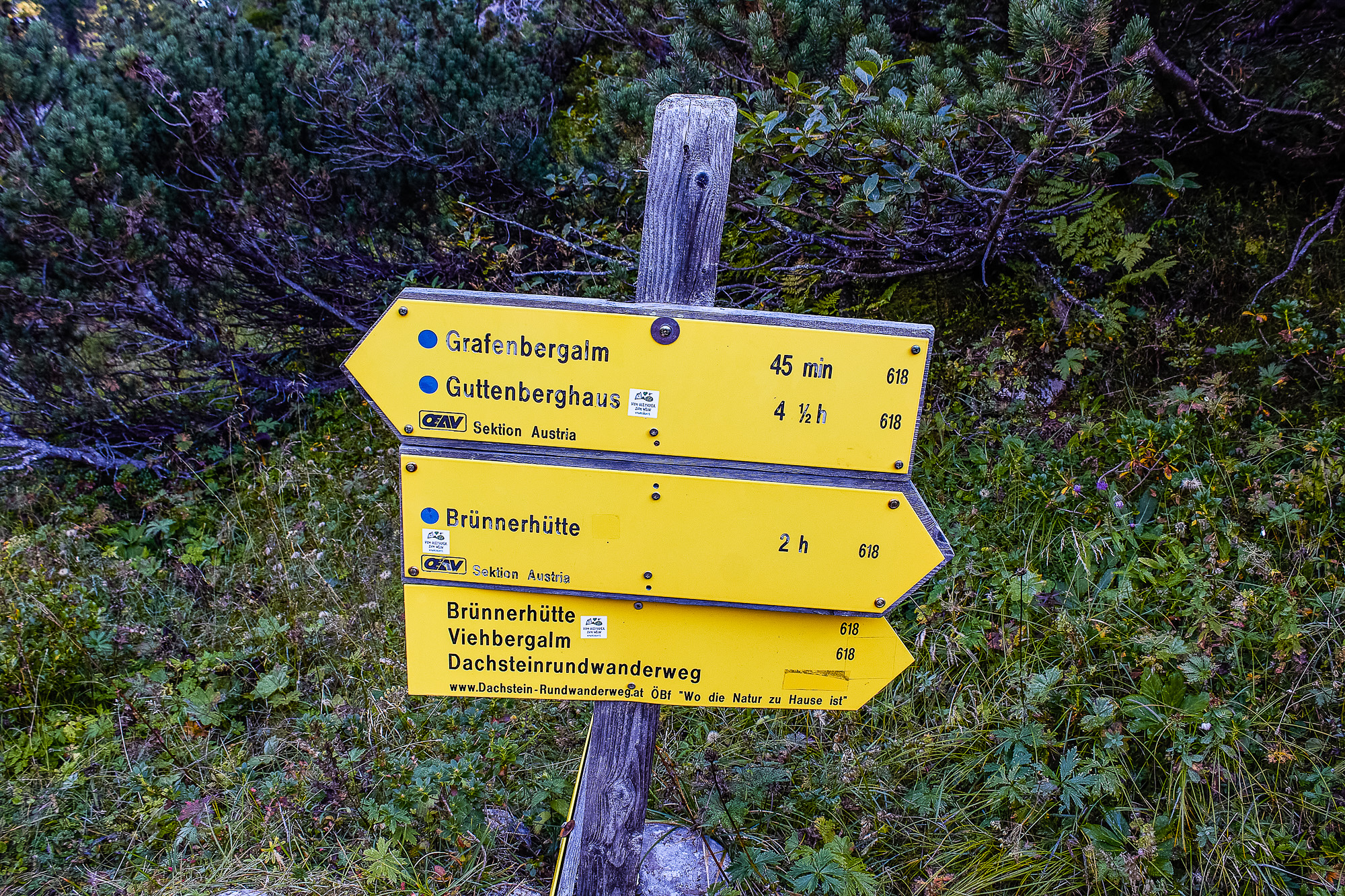 - Wegweiser Brünnerhütte zur Grafenbergalm im Dachsteingebirge