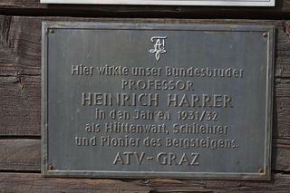 - Tafel Heinrich Harrer, Grazer Hütte auf der Tauplitzalm