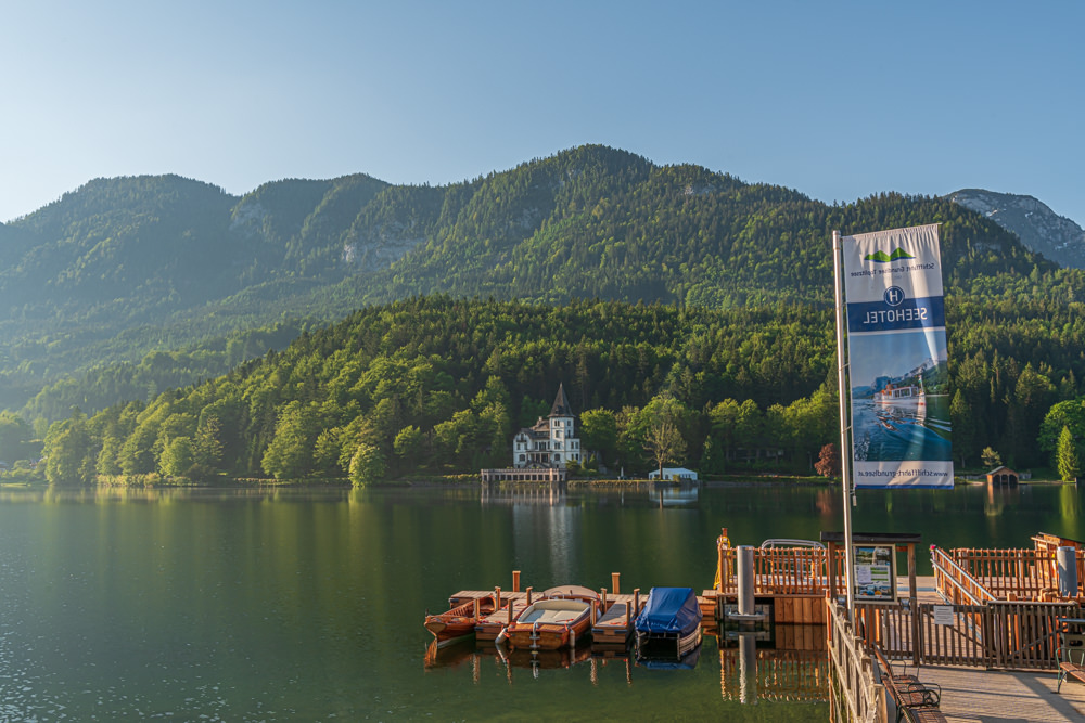 - Anlegestelle Seehotel Grundlsee am Grundlsee, im Hintergrund die Villa Castiglioni.