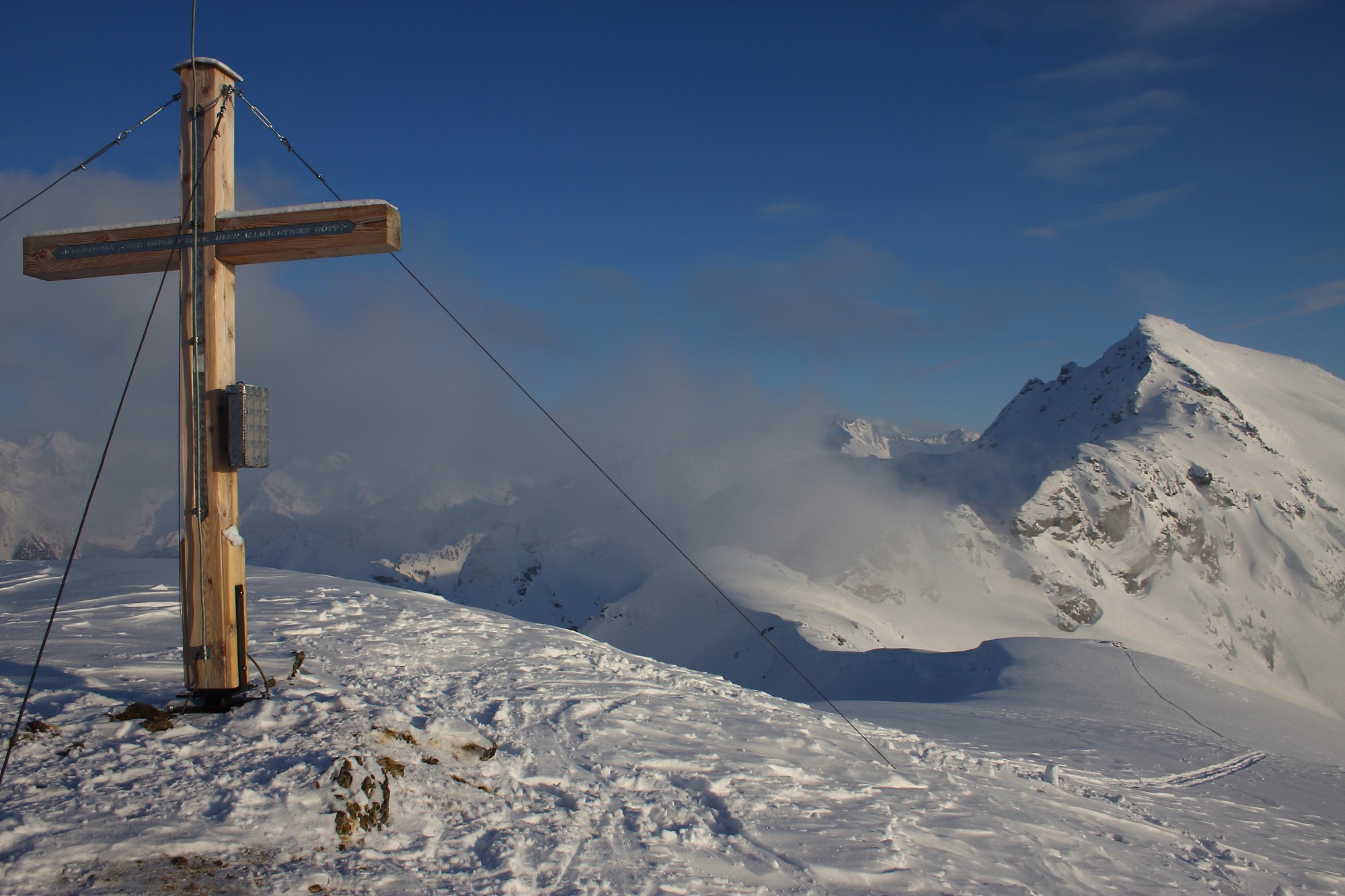 - Das Gipfelkreuz am Hochfeld zwischen dem Ober- und dem Preuneggtal
