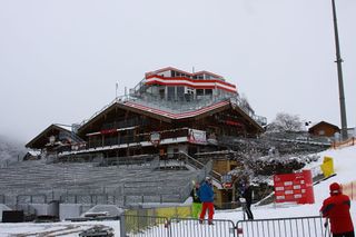 - Aufbauarbeiten für den Nachtslalom auf dem Zielhang der Planai 2014 in Schladming
