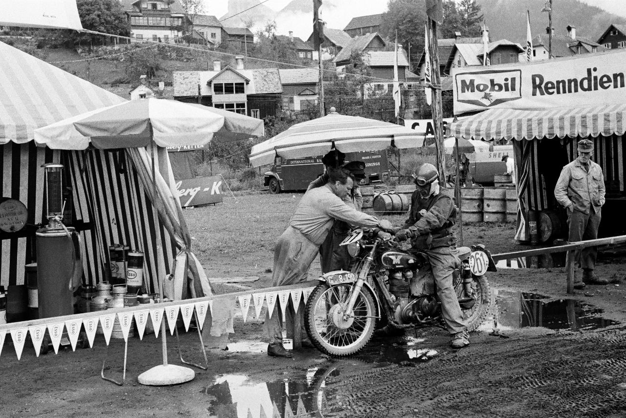 - Internationale Sechstagefahrt 1960, 1. Tag: bei den Service-Zelten in Bad Aussee