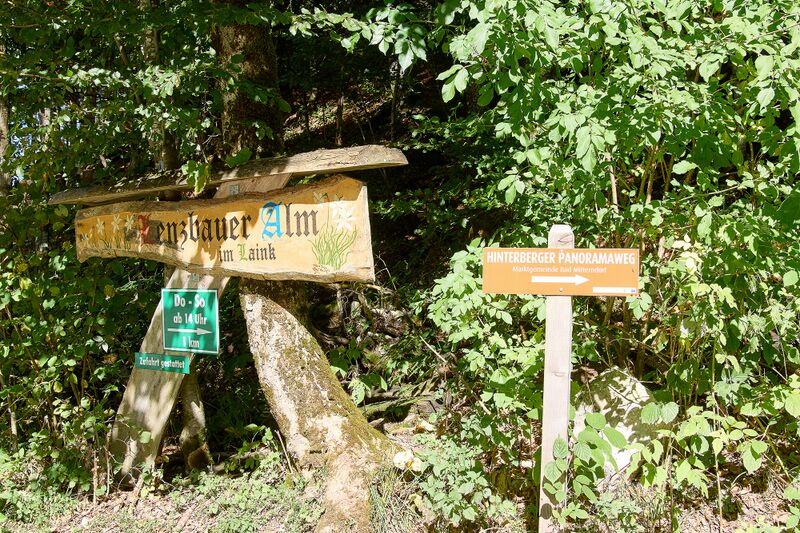 - Wegweiser zum Hinterberger Panoramaweg, Lenzbauer Alm in Pichl-Kainisch