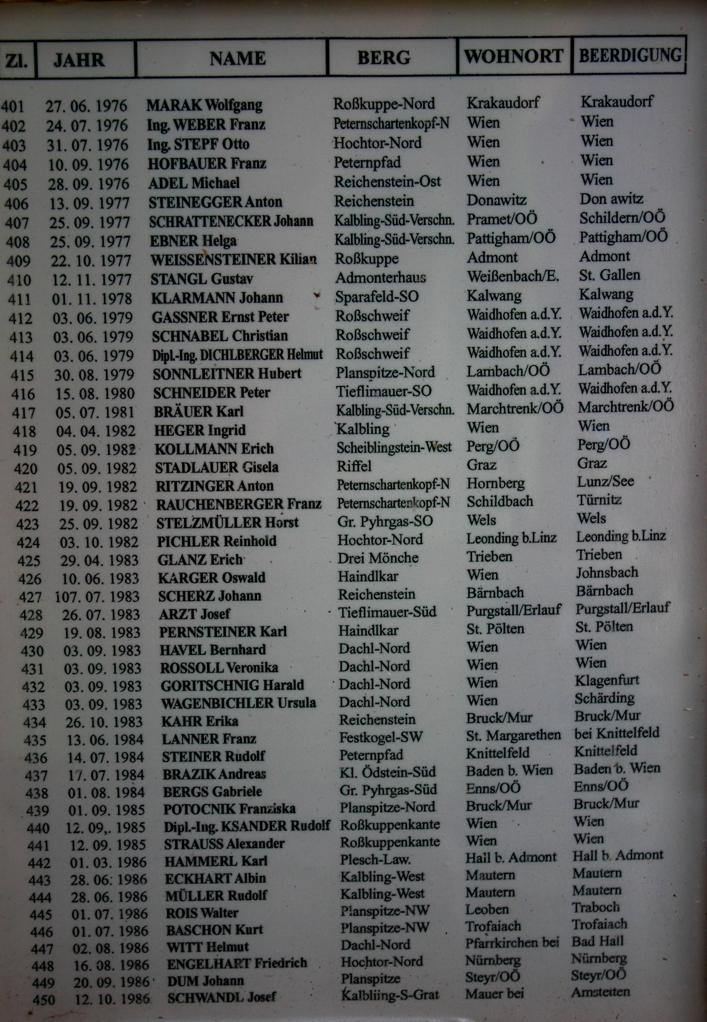 - 401 bis 450, Liste der verunglückten Bergsteiger im Gesäuse, Bergsteigerfriedhof Johnsbach