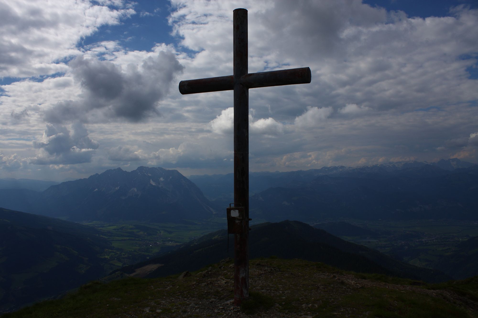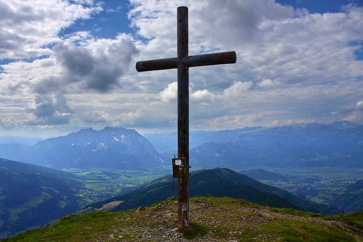- Das Gipfelkreuz auf dem Mölbegg im östlichen Gebiet von Donnersbach.