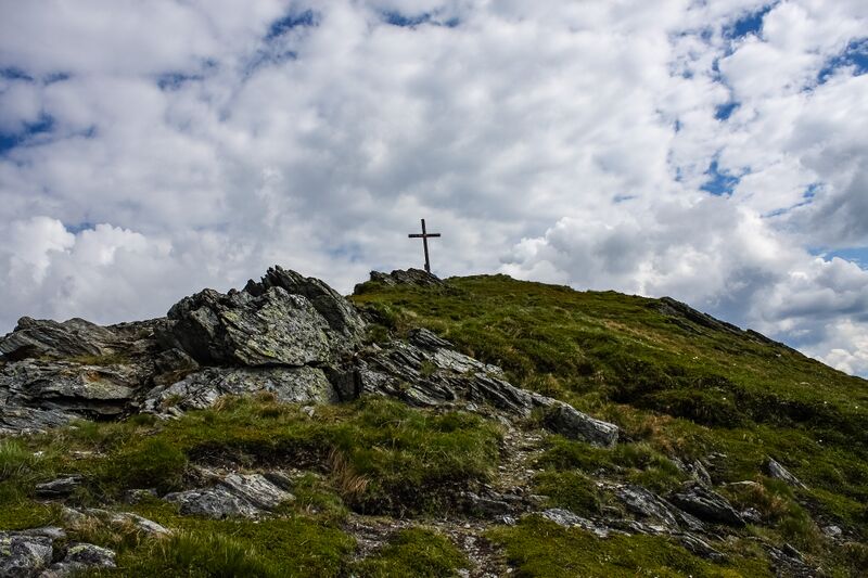 - Das Gipfelkreuz auf dem Mölbegg im östlichen Gebiet von Donnersbach.