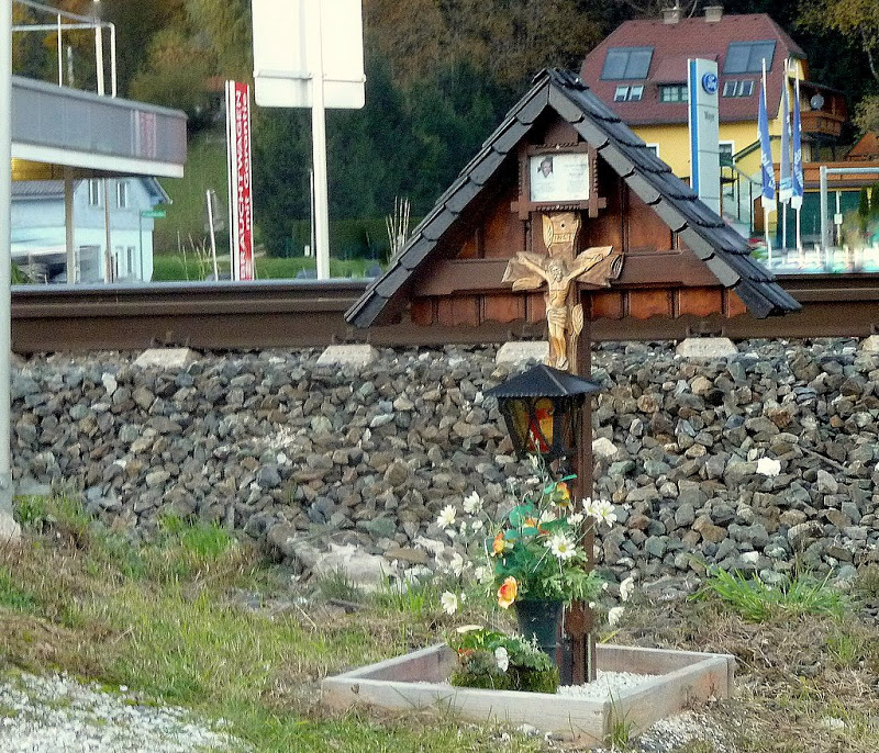 Das Marterl Walter Mali an der Ennstalbahn in Weißenbach bei Liezen.
