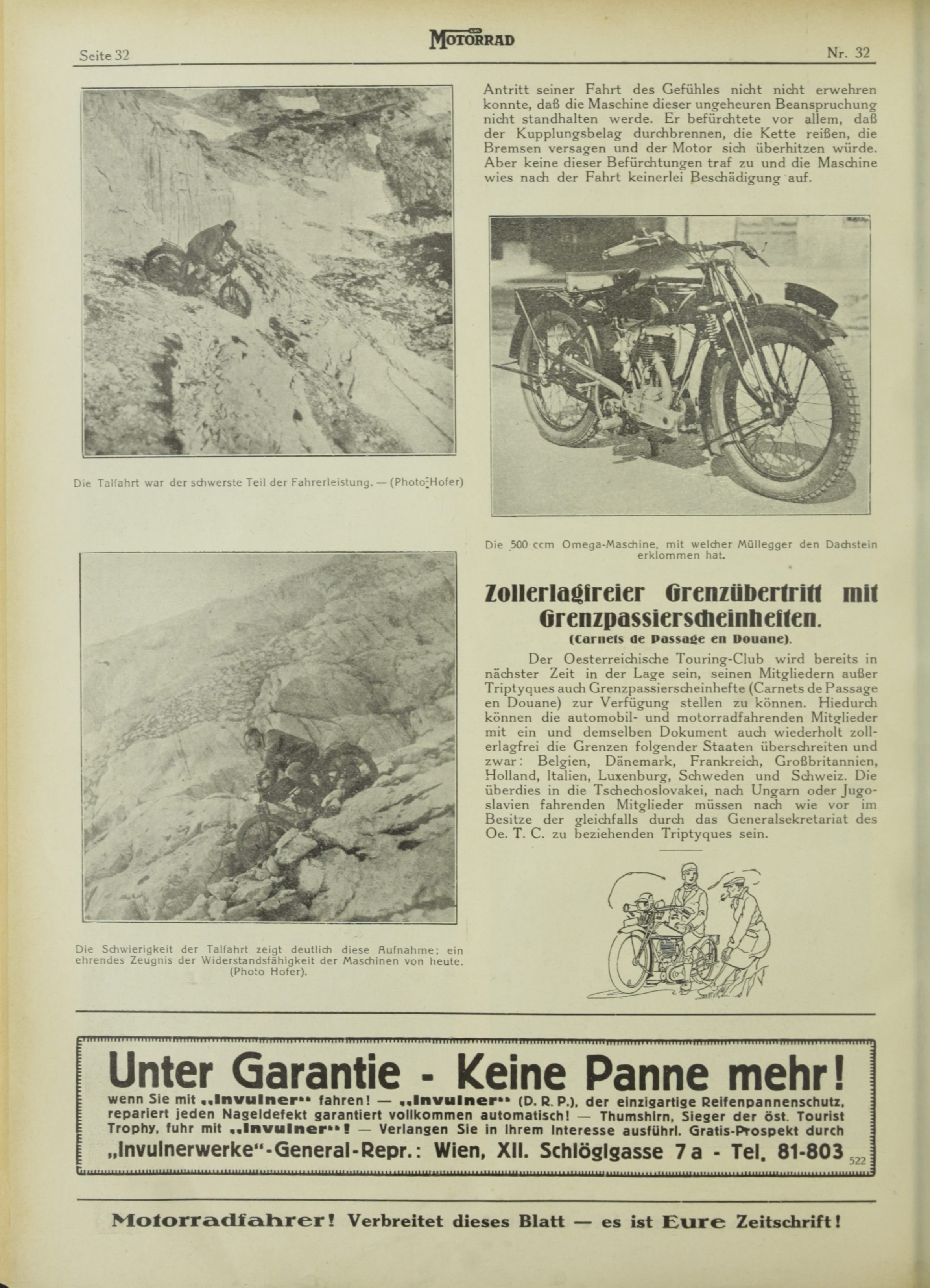 ANNO, Bericht mit Bildern in der österreichischen Motorradzeitschrift "Das Motorrad", Jahrgang 1926, Ausgabe 32 vom 15. August 1926, Seite 34