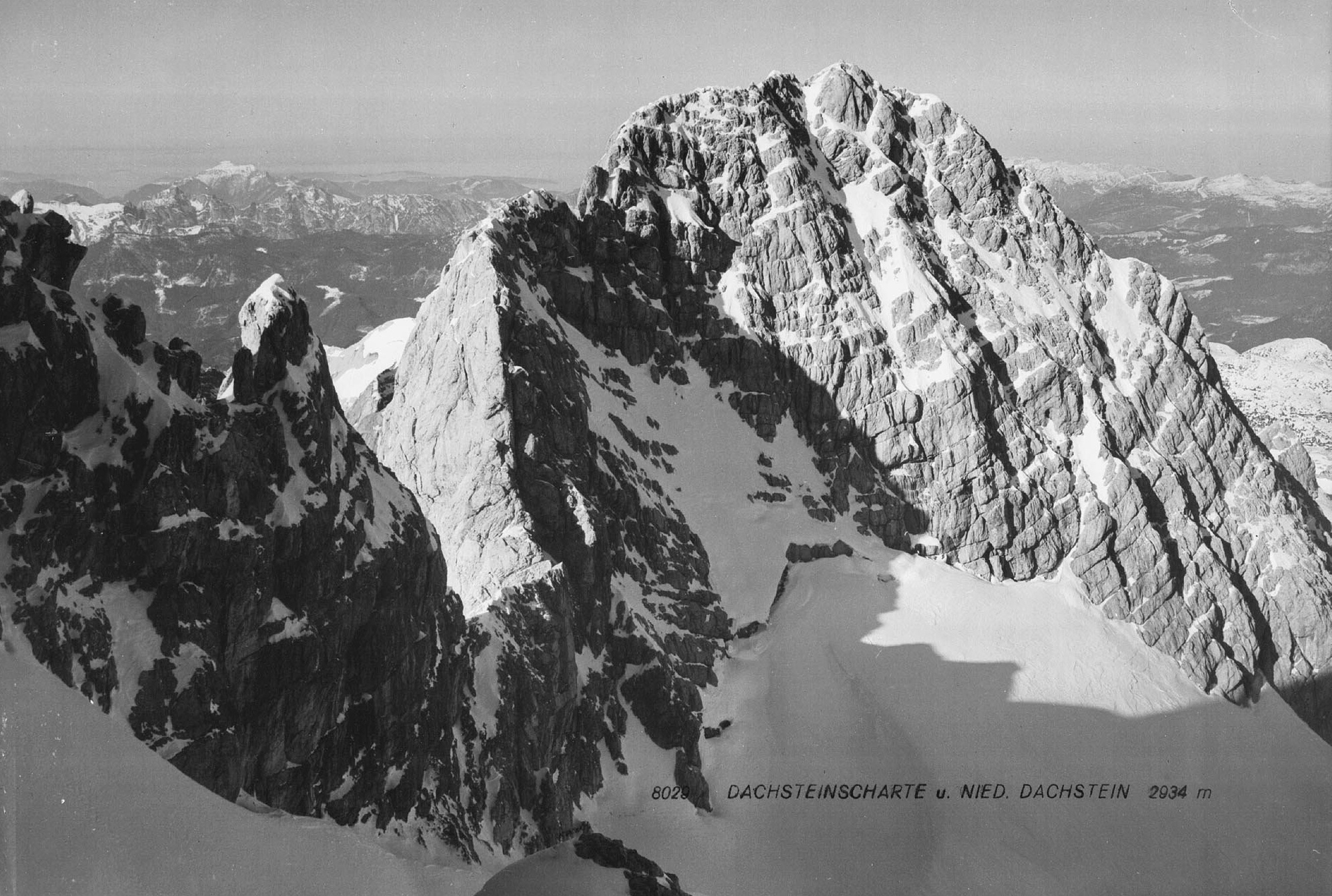 Links die Steinerscharte, gleich gefolgt von der Simonyscharte, rechts der Niedere Dachstein, Aufnahme aus den 1950er- oder 1960er-Jahren