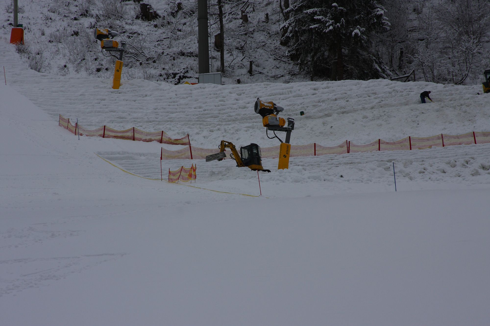- Aufbauarbeiten für den Nachtslalom auf dem Zielhang der Planai 2014 in Schladming