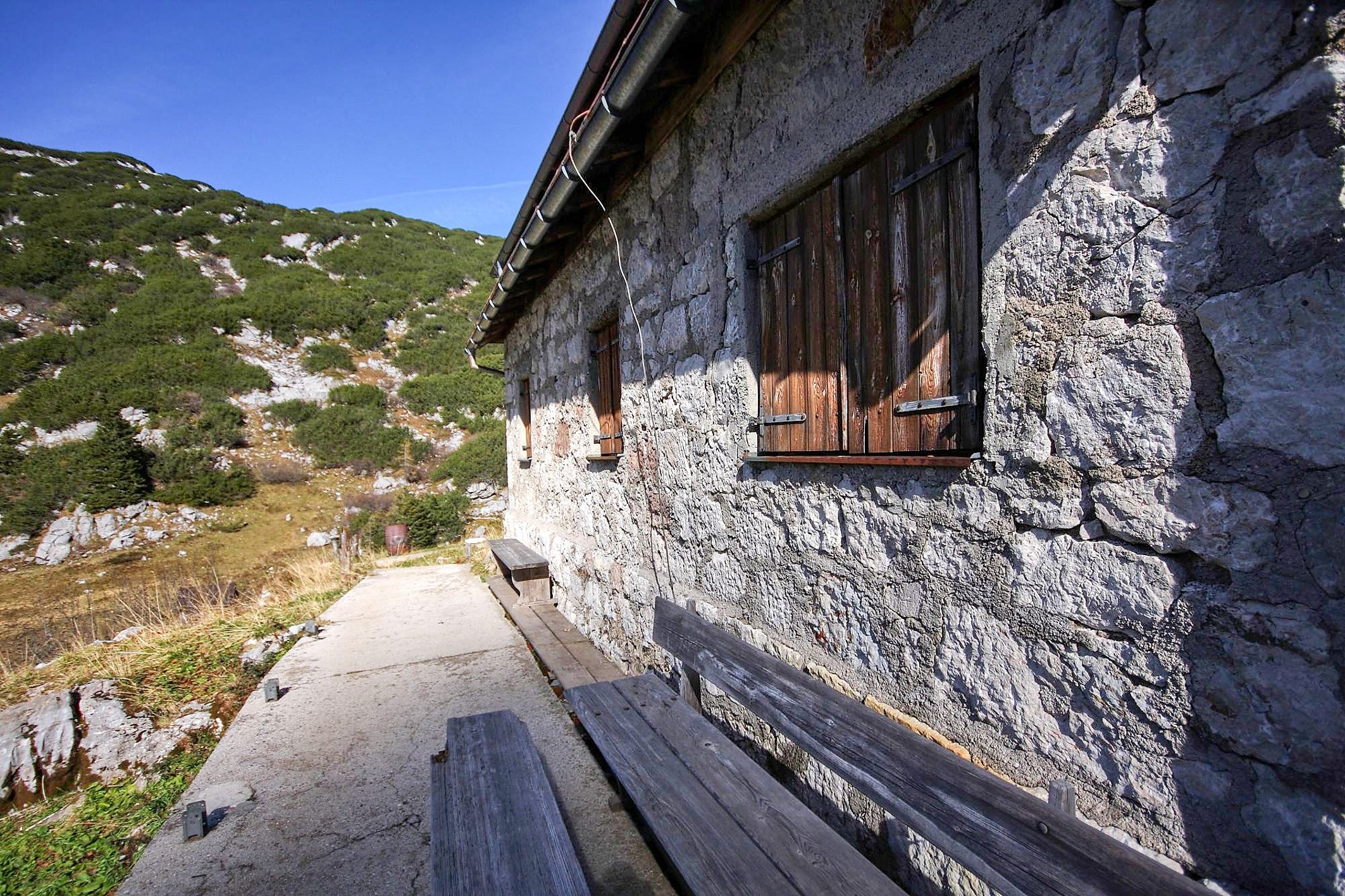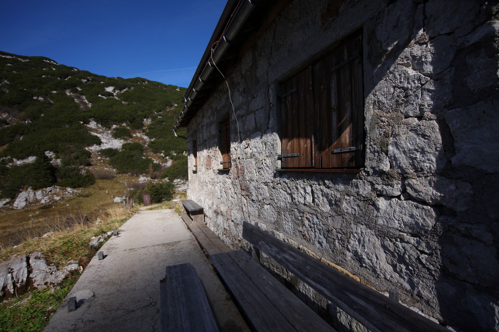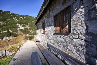 - Die Pühringerhütte beim Elmsee im Toten Gebirge.