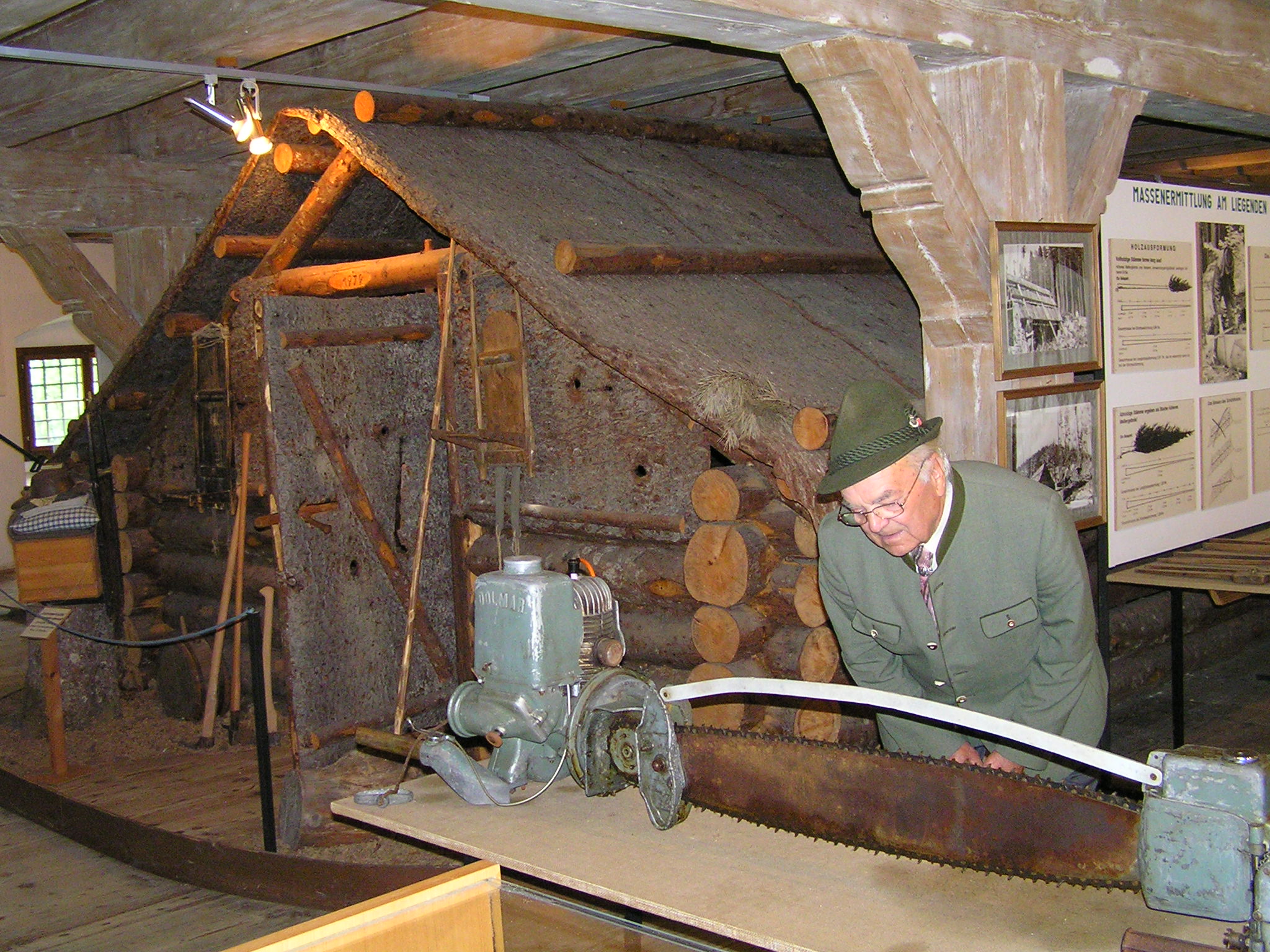 | aktuell | 20:28, 20. Mär. 2014 | 2.048 × 1.536 (715 KB) | Engelbert Weidhofer (Diskussion | Beiträge) | {{Bildbeschreibung |Beschreibung = der ehemalige Zimmerer begutachtet eine der ersten Motorsägen vor einer Original-Holzknechthütte |Quelle = Forstmuseum "Silvanum" in Großreifling |Fotograf =Engelbert Weidhofer |Erstelldatum =Juni 2008 |Lizenzkommenta |