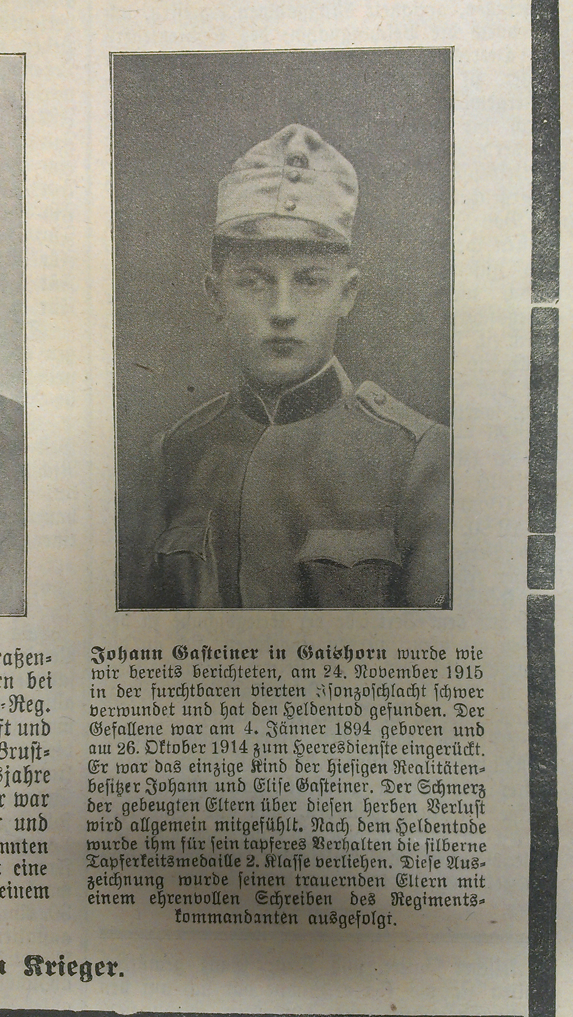 Parte mit Bild, Hans Gasteiner, Der Ennstaler, 1916, Archiv Krenn