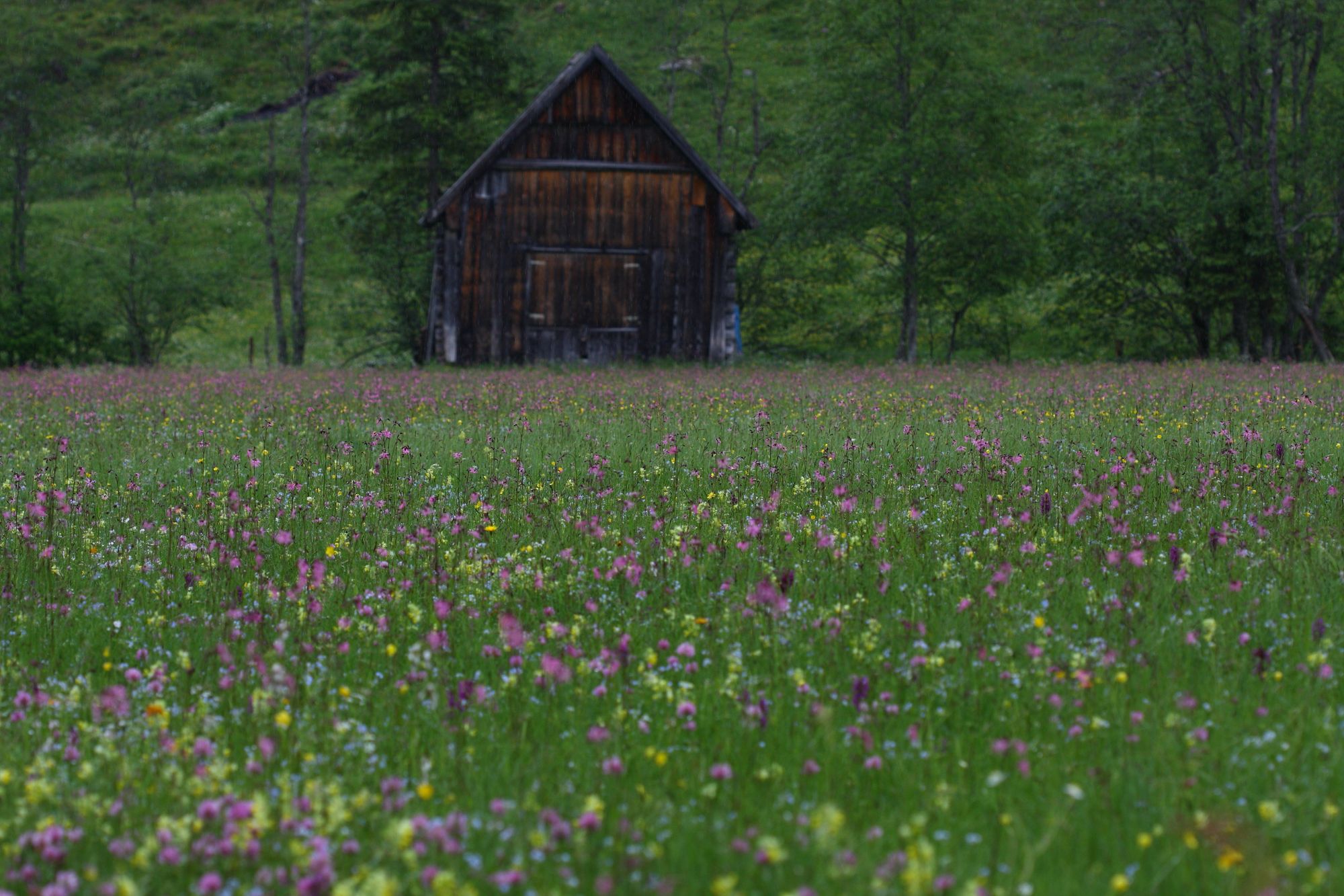 Blumenwiese mit Heustadel im Preuneggtal in der ehemaligen Gemeinde Pichl-Preunegg, eingemeindet nach Schladming.