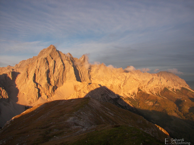 - Der Rötelstein im Dachsteingebirge.] mit Blick auf das Dachsteinmassiv mit links dem Torstein