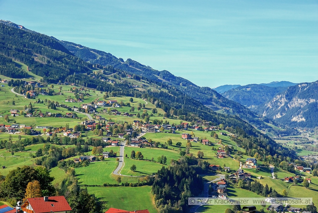 - Blick vom Fastenberg nach Westen auf den Ortsteil Rohrmoos der Gemeinde Rohrmoos-Untertal.