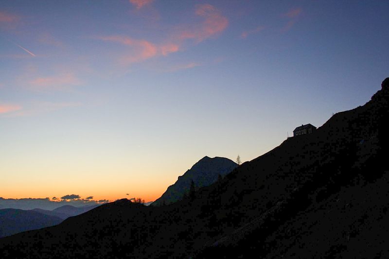 - Sonnenuntergang bei der Dachstein-Südwand-Hütte am Fuß der Dachstein Südwand.