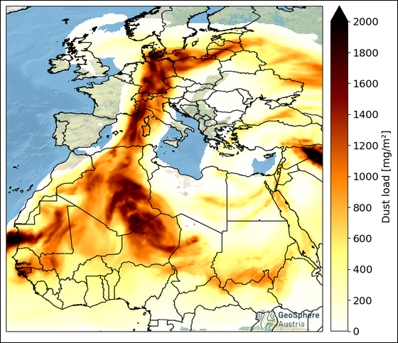 - Saharasand Anfang April 2024 über Mitteleuropa.