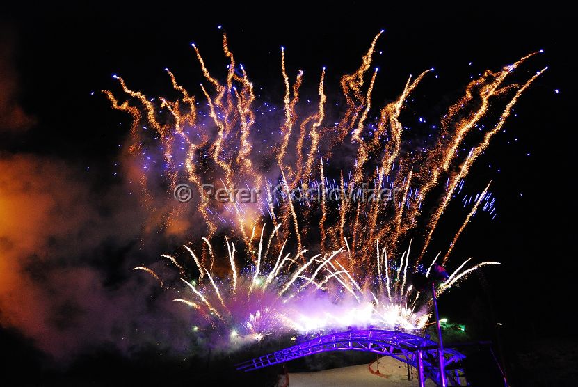 - Eröffnungsfeier der Alpinen Ski WM 2013 in Schladming; hier ein Feuerwerk auf dem Skygate;
