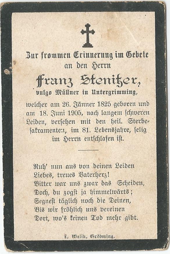 - Sterbebild Franz Stenitzer von 1905