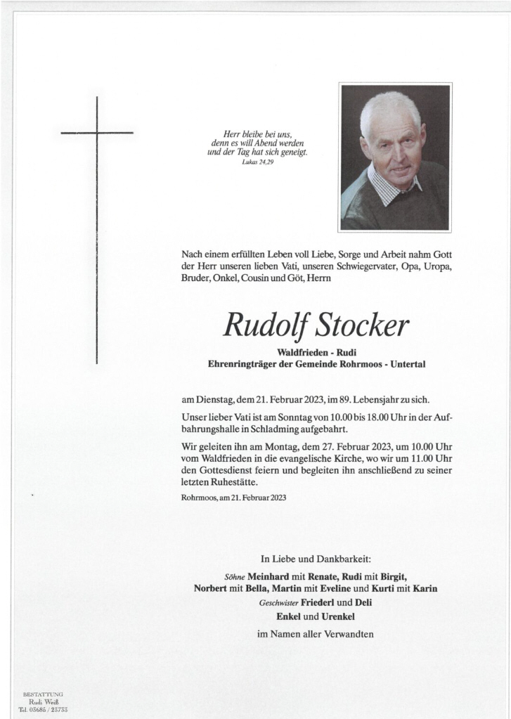 - Parte von Rudolf Stocker Hotelier aus Rohrmoos-Untertal.
