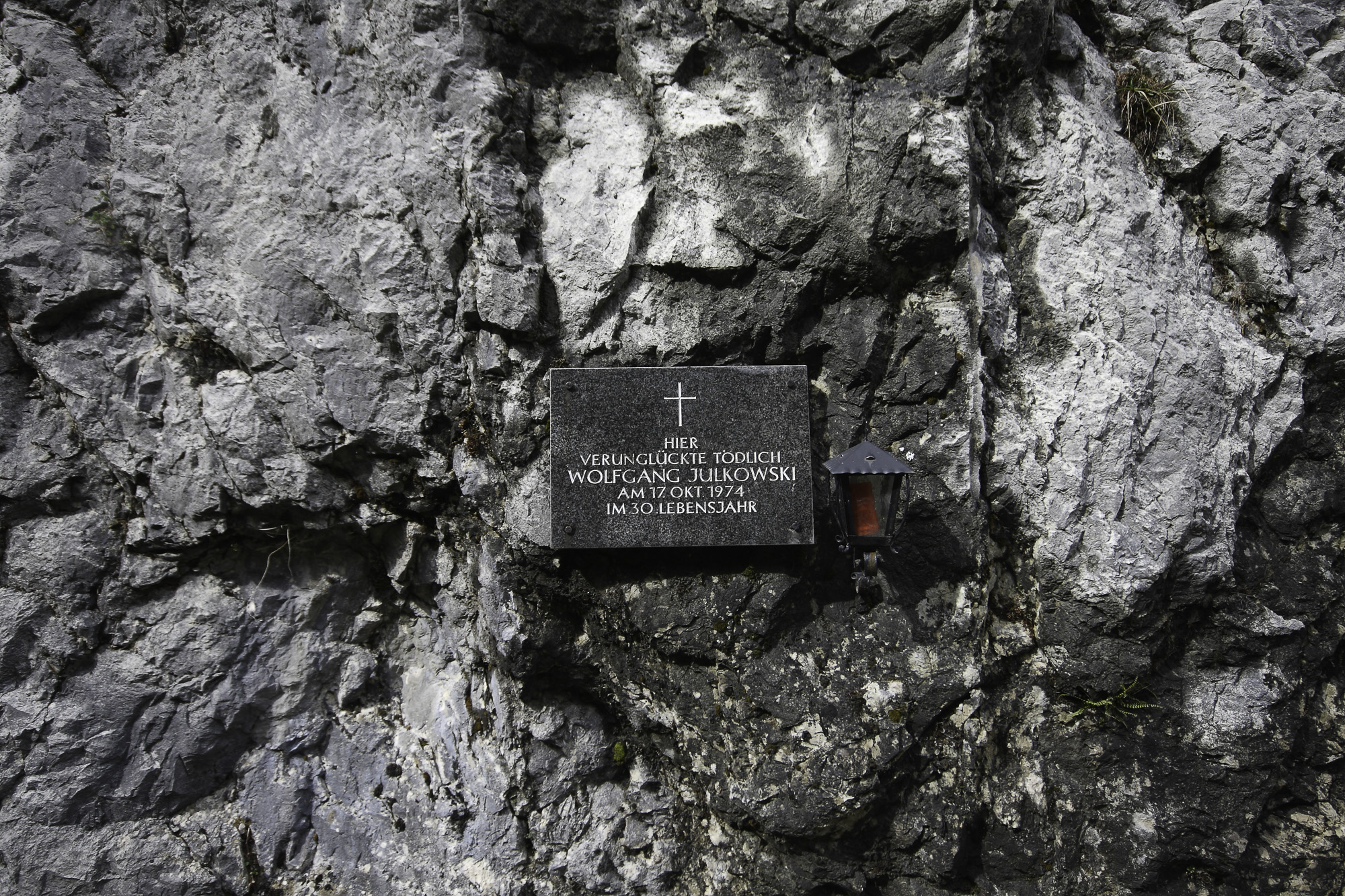 die Gedenktafel Wolfgang Julkowski , Pass-Stein-Straße Bad Mitterndorf