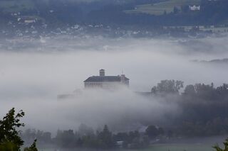 - das Schloss Trautenfels im Morgennebel