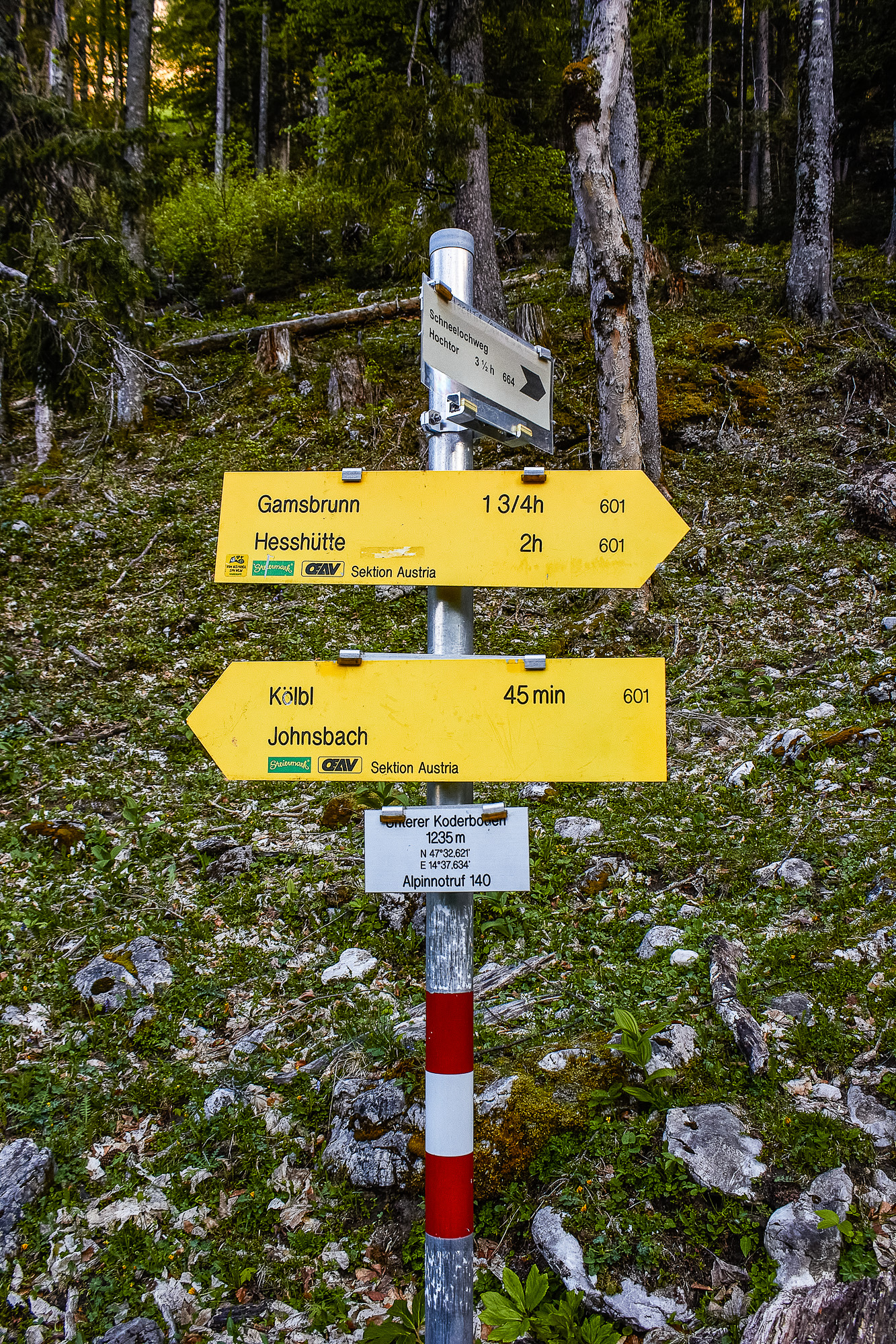 - alpiner Wegweiser Unterer Koderboden im Johnsbachtal