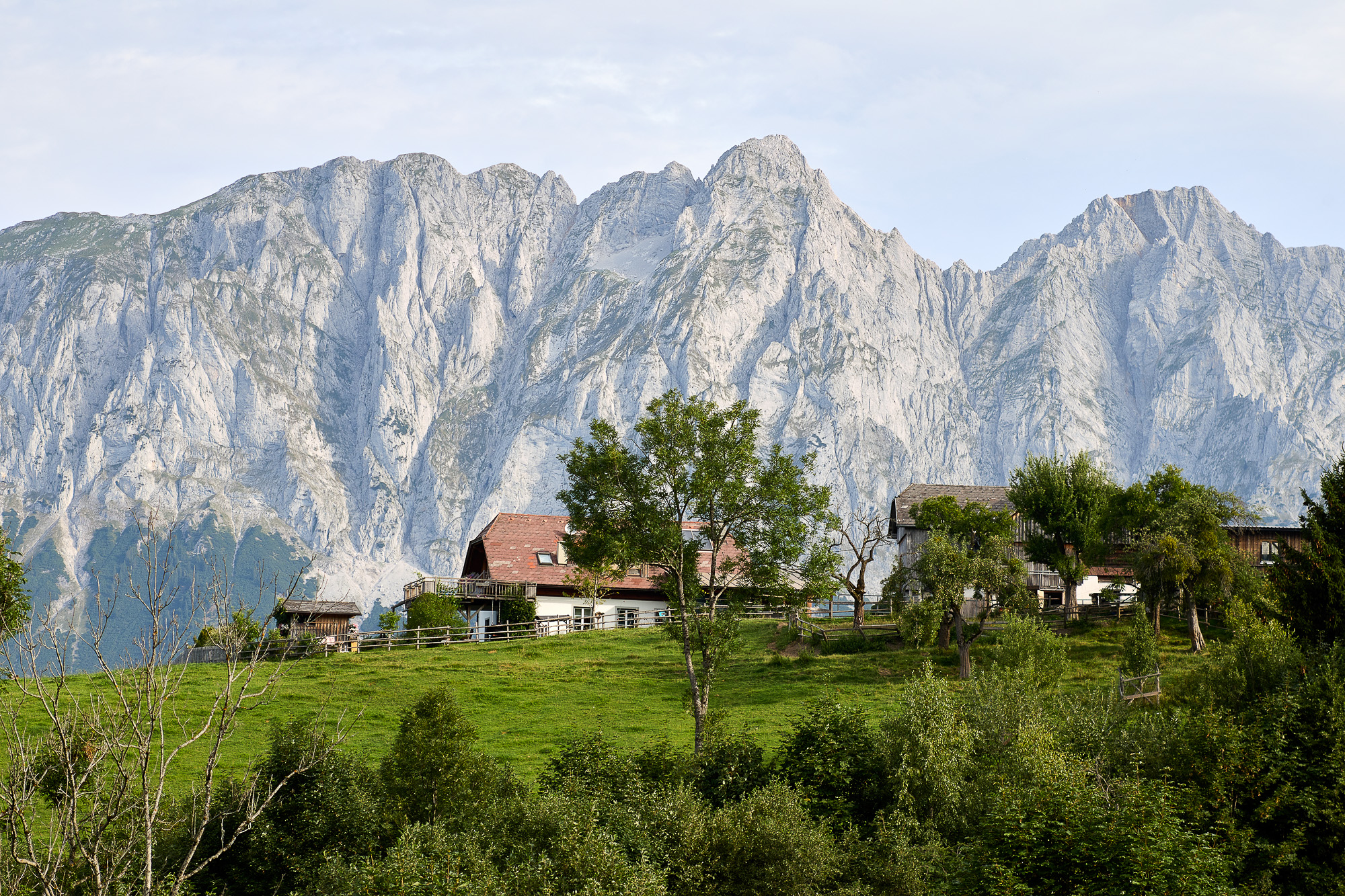 Der Bauernhof Schweiger vlg. Timmerl (Öblarn) in Sonnberg Nr. 18, im Hintergrund der Grimming