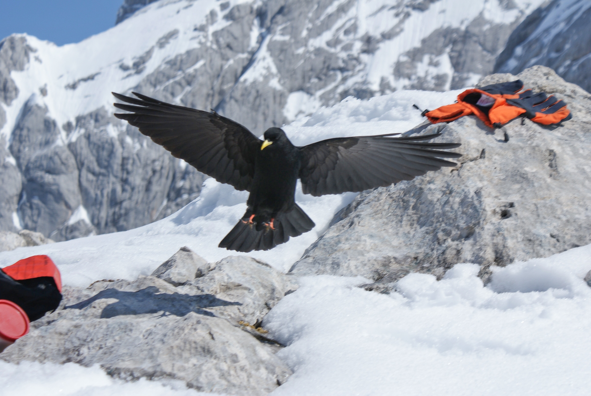 Eine Alpendohle südlich der Windlegerscharte im Windlegerkar im westlichen Dachsteingebirge.