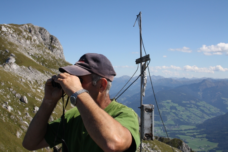 - Beim Gipfelkreuz vom Zwölfer Richtung Osten (2 146 m ü. A.), dahinter das Steinfeld