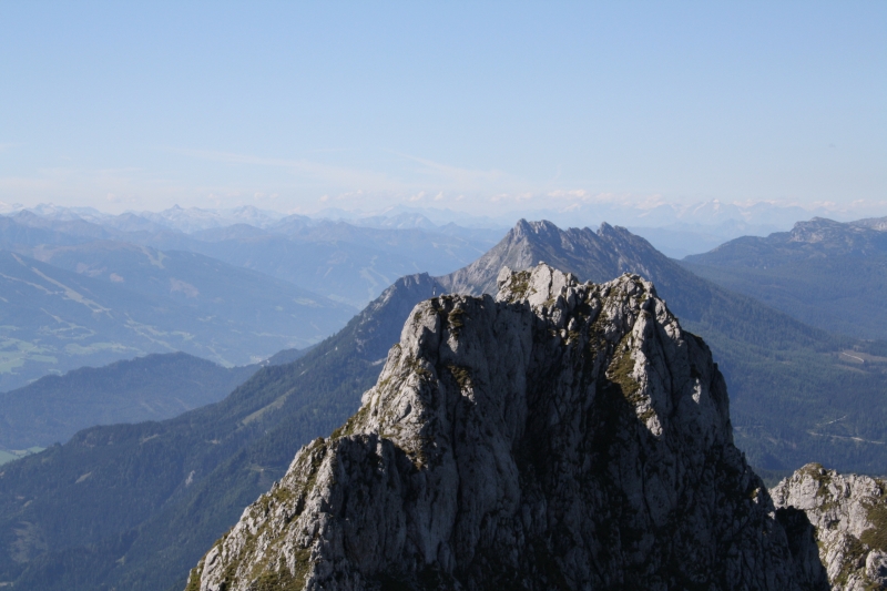 - Zwölfer am Grimmingstock von der Steinfeldspitze Richtung Westen (2 146 m ü. A.), dahinter der Kammspitz (2 139 m ü. A.)