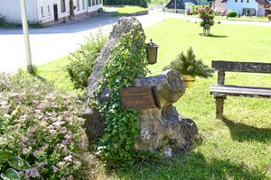 Die Gedenktafel befindet nur wenige Meter nördlich der Grenze zum Bezirk Liezen bei der Dorfkapelle, nur durch die L 715 Hengstpassstraße und den Laussabach getrennt.